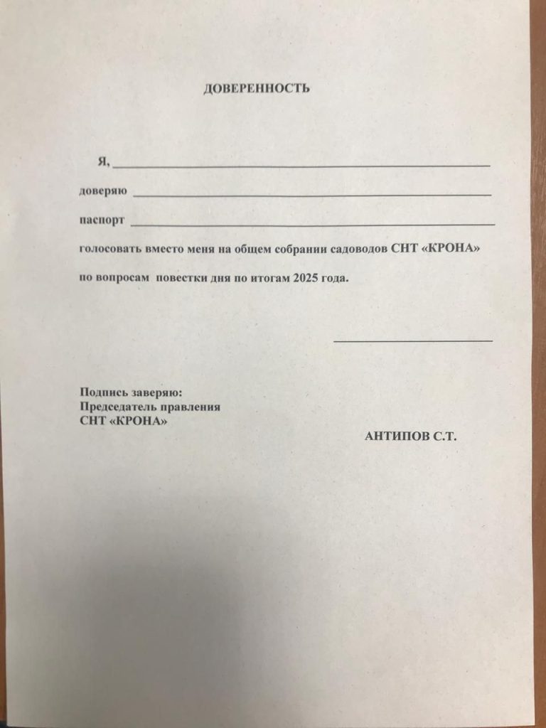 Образец доверенности для голосования: